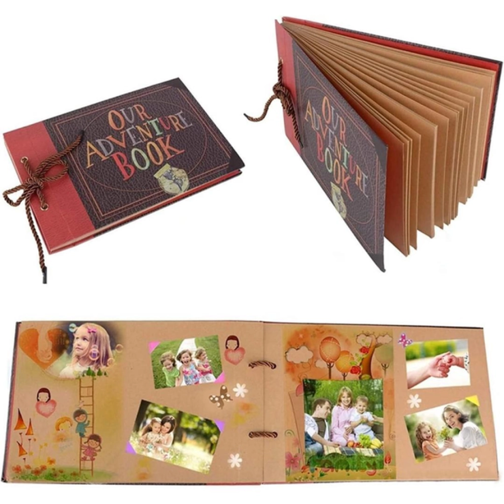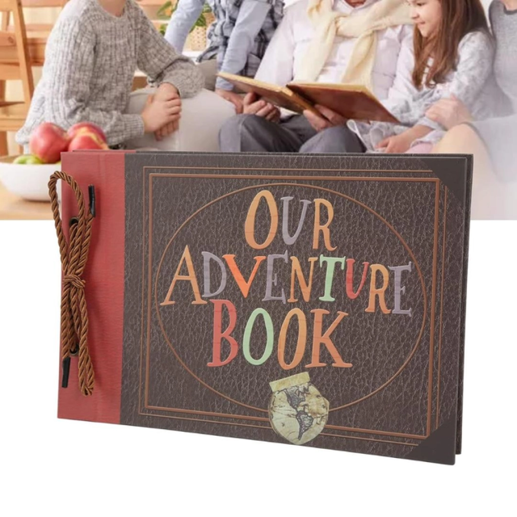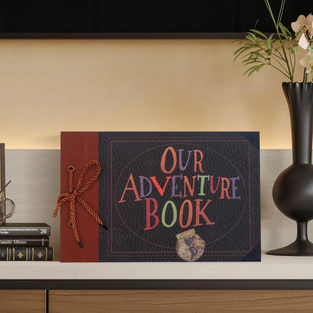 Фотокнига для скрапбукінгу Our Adventure Book - це стильний альбом для збереження ваших найкращих спогадів. Ідеально підходить для створення сімейного альбому, оформлення подорожей або як подарунок на особливі моменти. Обкладинка виконана в ретро-стилі з декоративною зав'язкою, що надає альбому вінтажного й атмосферного вигляду.