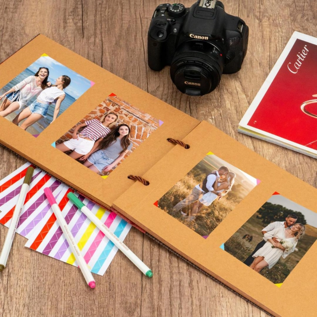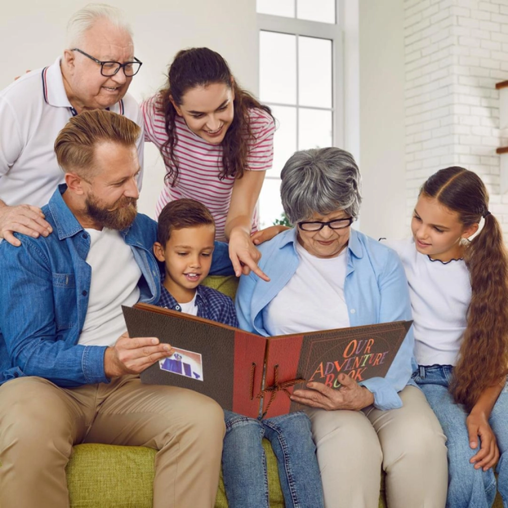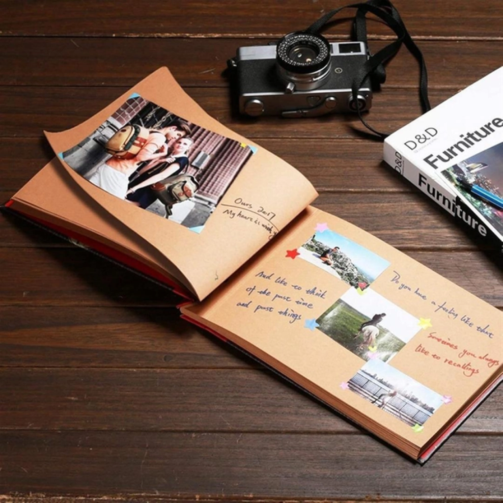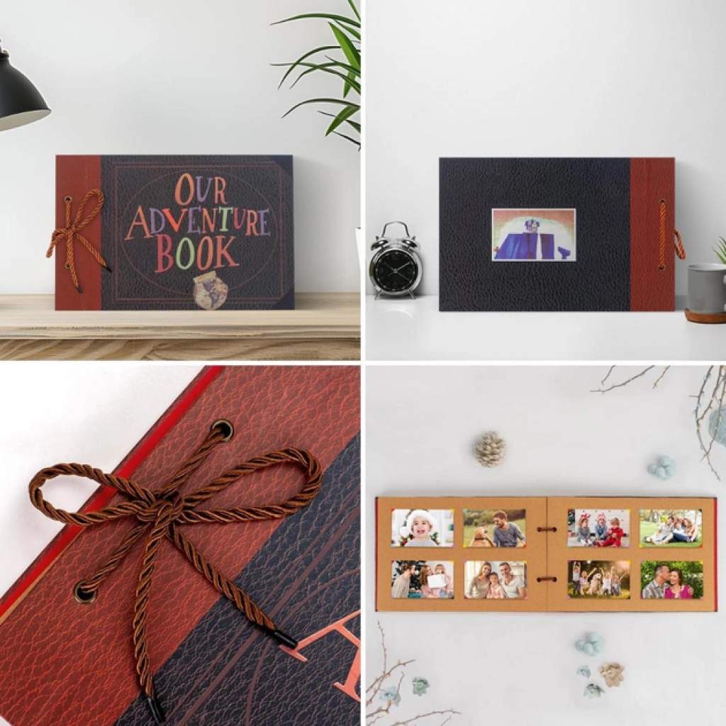 Фотокнига для скрапбукінгу Our Adventure Book - це стильний альбом для збереження ваших найкращих спогадів. Ідеально підходить для створення сімейного альбому, оформлення подорожей або як подарунок на особливі моменти. Обкладинка виконана в ретро-стилі з декоративною зав'язкою, що надає альбому вінтажного й атмосферного вигляду.