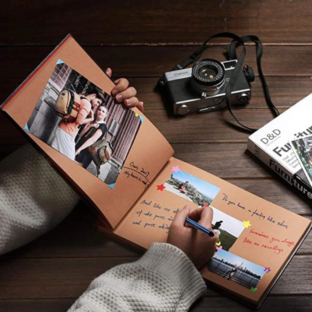 Альбом містить достатню кількість сторінок для вклеювання фотографій, малюнків або записів про ваші пригоди. Він сумісний із технікою скрапбукінгу, що дає змогу доповнювати сторінки наліпками, вирізками та декоративними елементами. Завдяки компактному розміру його зручно зберігати або брати з собою.