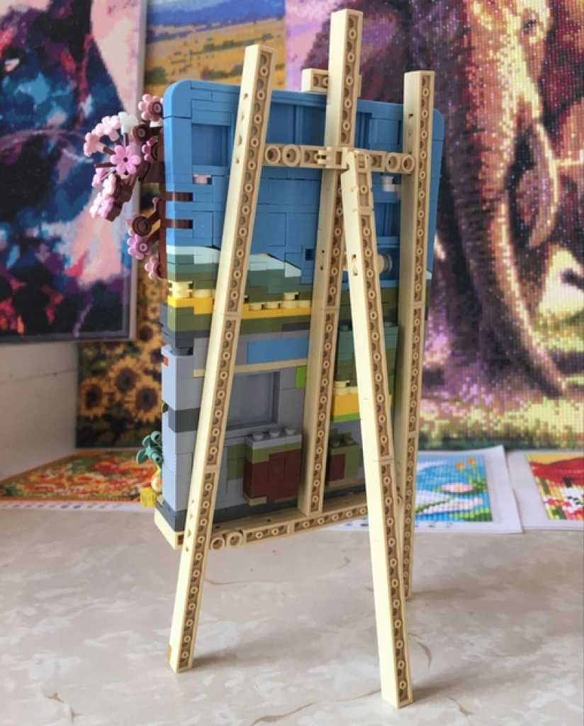 Цей унікальний набір поєднує будівництво з дрібних деталей і створення декоративного панно у форматі мольберта.