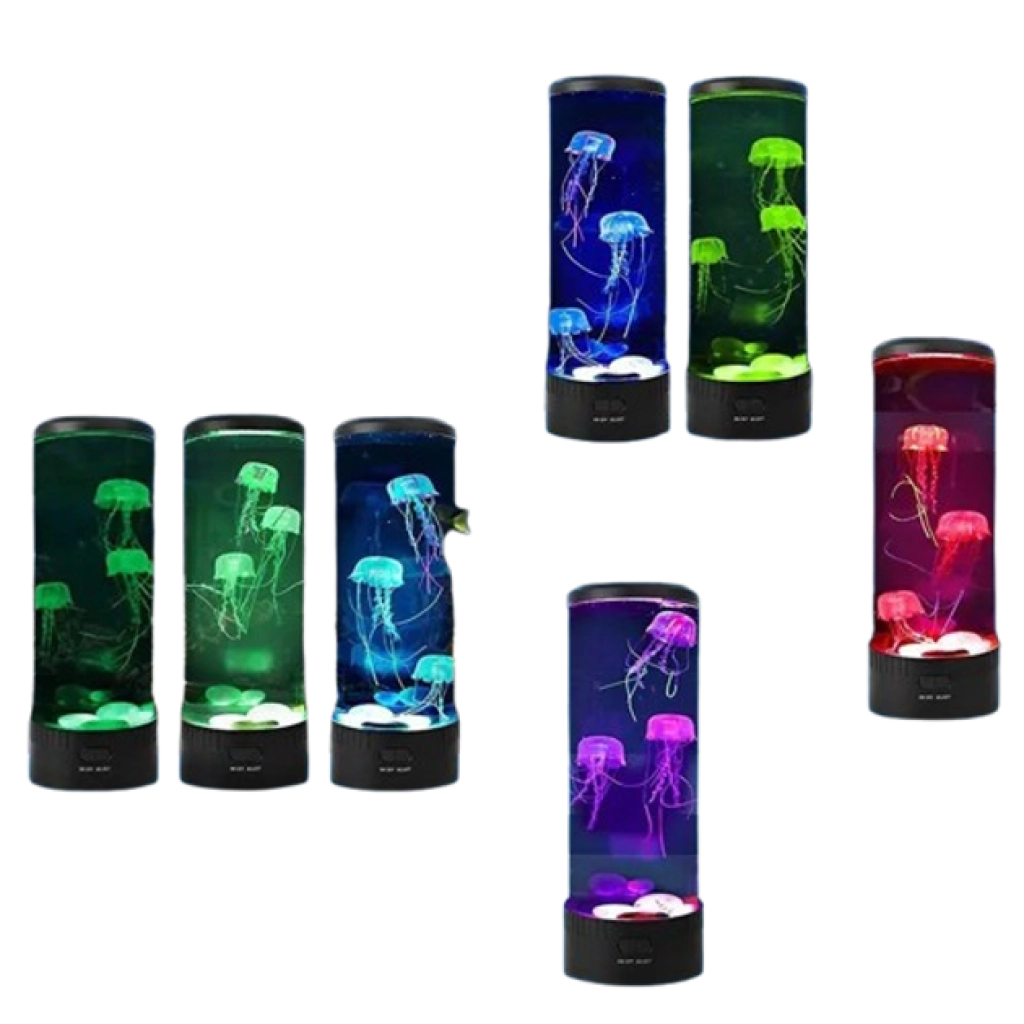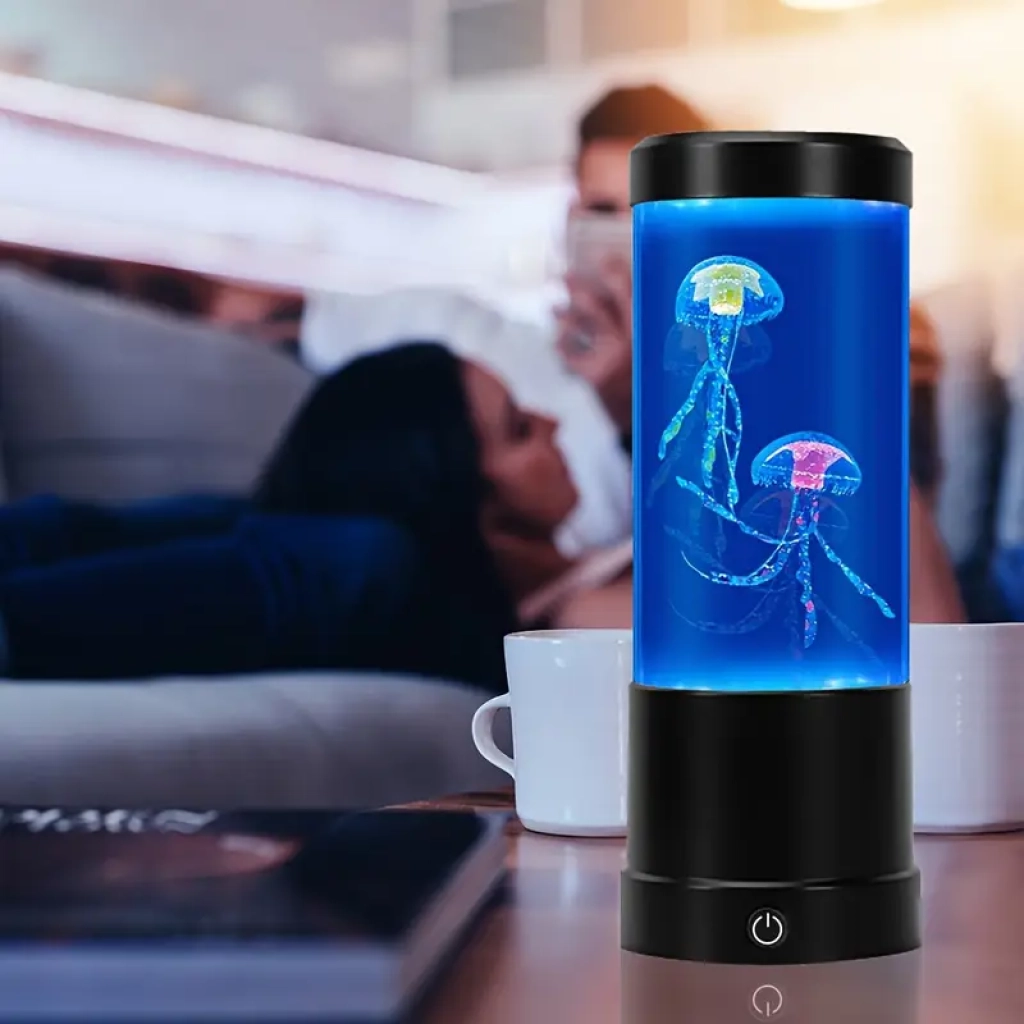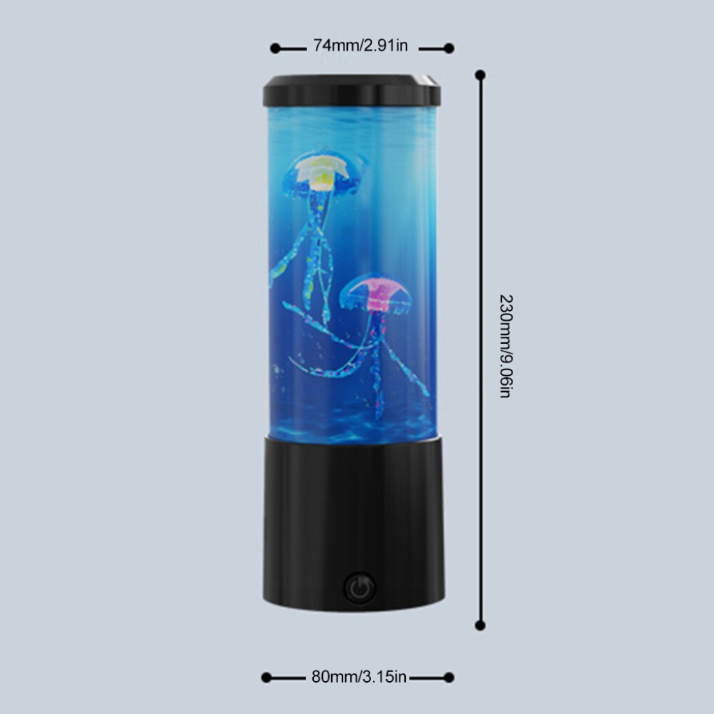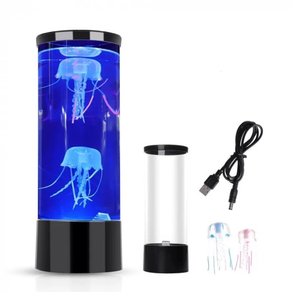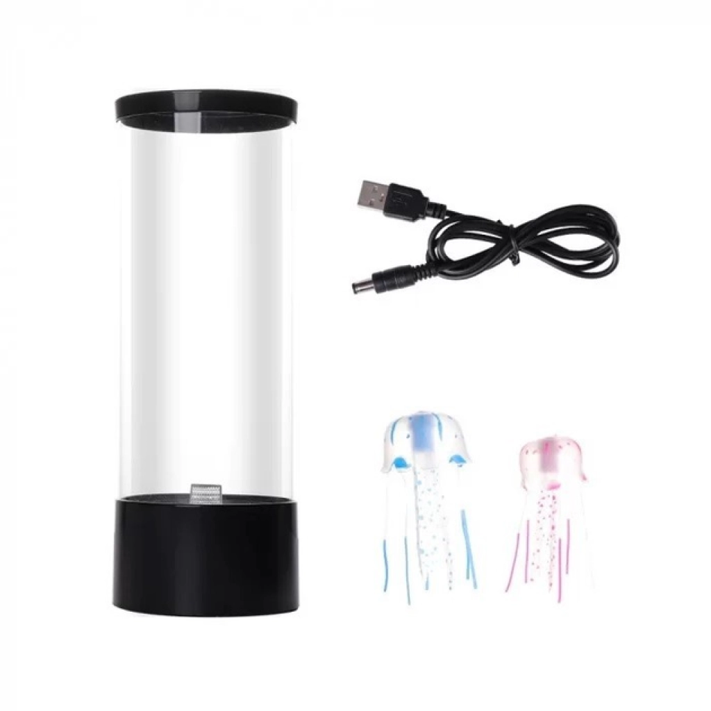 Лампа зі світлодіодними медузами – гарний елемент інтер'єру, який прикрасить будинок чи офіс. Оригінальна лампа зі штучними медузами імітує акваріум, створює сприятливу заспокійливу атмосферу, надає романтизму приміщенню. LED підсвічування з 6-ма різними кольорами посилює ефект і дозволяє використовувати лампу як нічник.