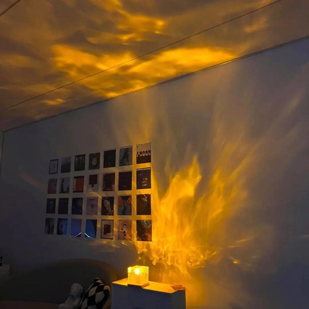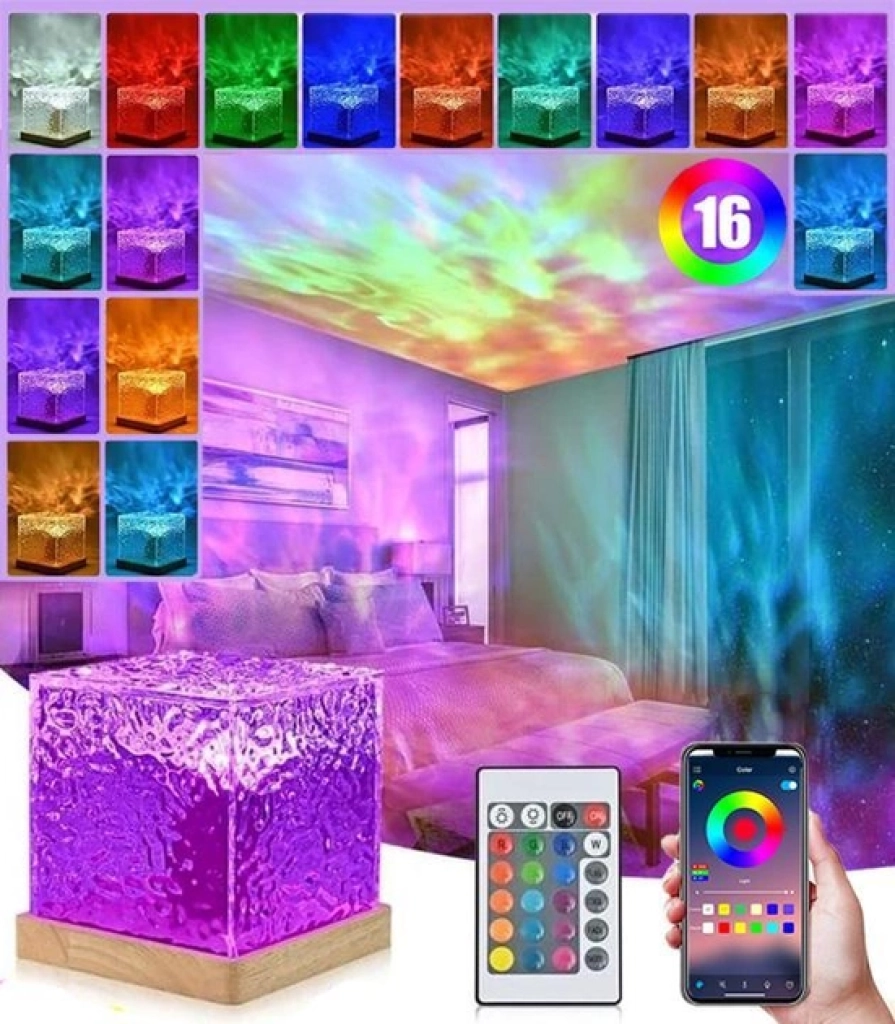 Нічний світильник куб проектор північного сяйва з проекцією води та ефектом водяної хвилі настільна RGB лампа 16 кольорів з пультом живлення USB