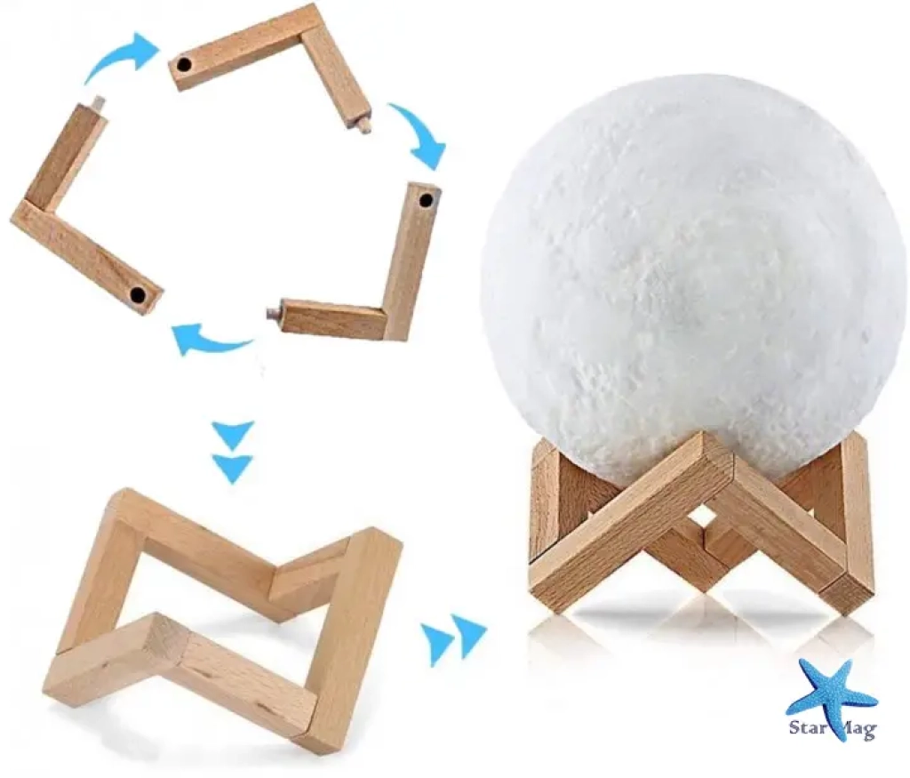 Цей тип місячного світильника має дерев'янну підставку і виглядає витонченим.