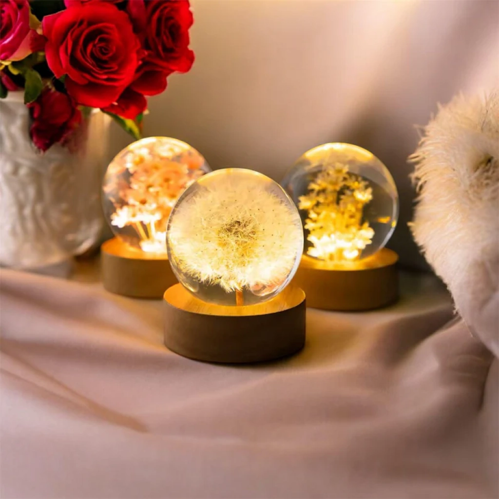 Унікальний світильник, який поєднує в собі вічну красу консервованих квітів із символізмом вічного кохання. Кожна лампа містить ніжно збережені квіти, загорнуті в кришталево чисту сферу, що символізує непохитну відданість, що перевершує час. Вони втілюють послання непохитної любові, пропонуючи значущий та тривалий символ прихильності, який освітлюватиме ваш дім та серце протягом багатьох років.