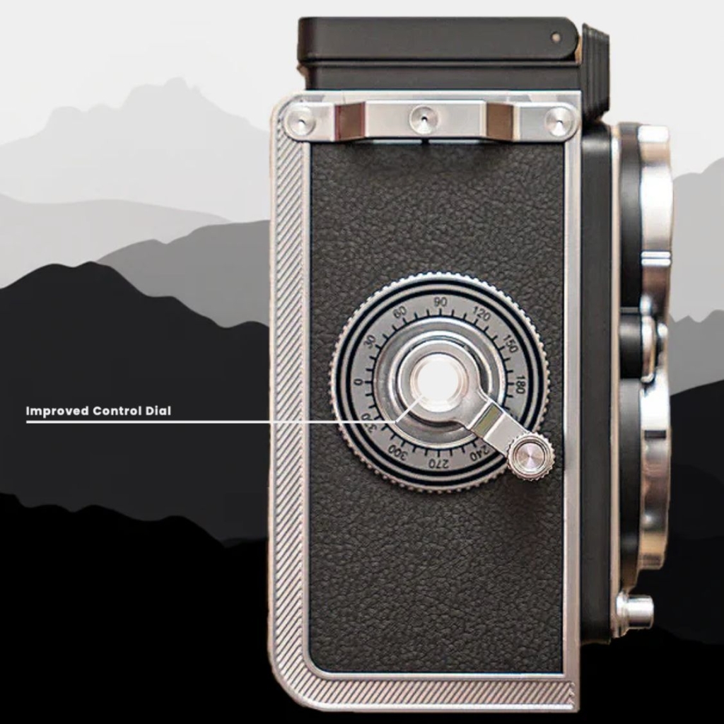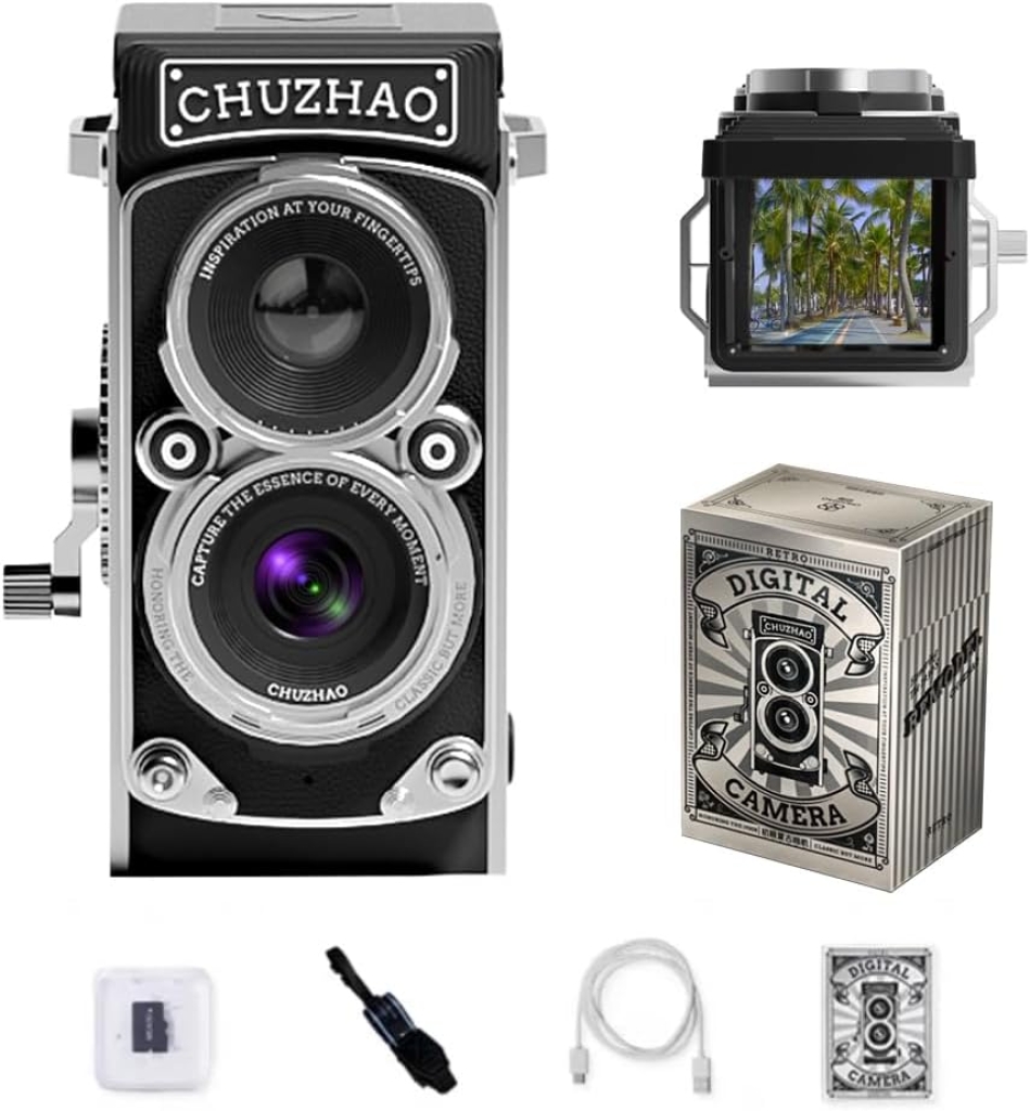 Цифровий фотоапарат має зеркальне відображення з двома об’єктивами (TLR) з 1,54-дюймовим видошукачем і класичним джойстиком, що поєднує ностальгію з сучасними функціями для унікального вигляду та відчуття. (Зверніть увагу, що лише одна камера функціональна; інша призначена для декоративних цілей.)