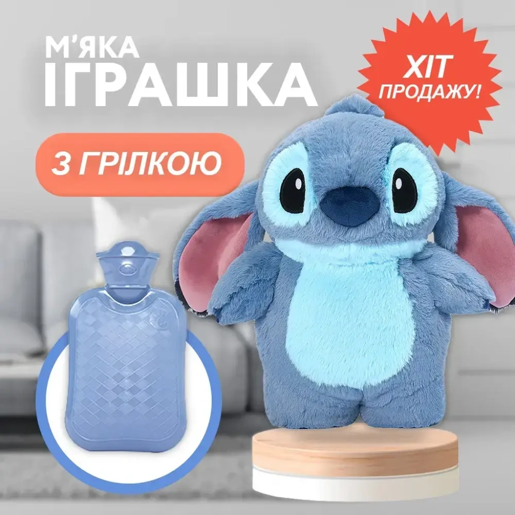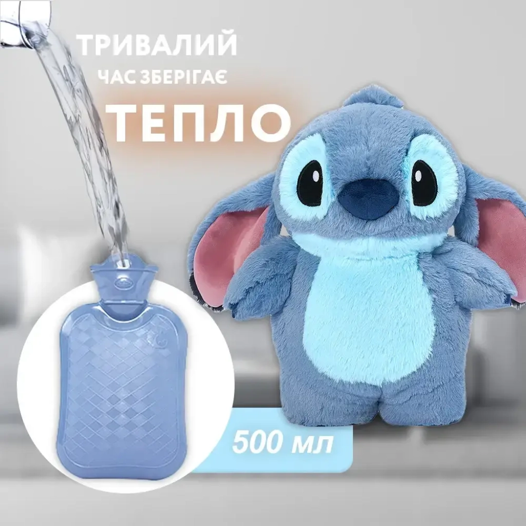 М'яка іграшка з грілкою для гарячої води Stitch гумова грілка + плюшевий чохол у вигляді Стіча 500 мл
